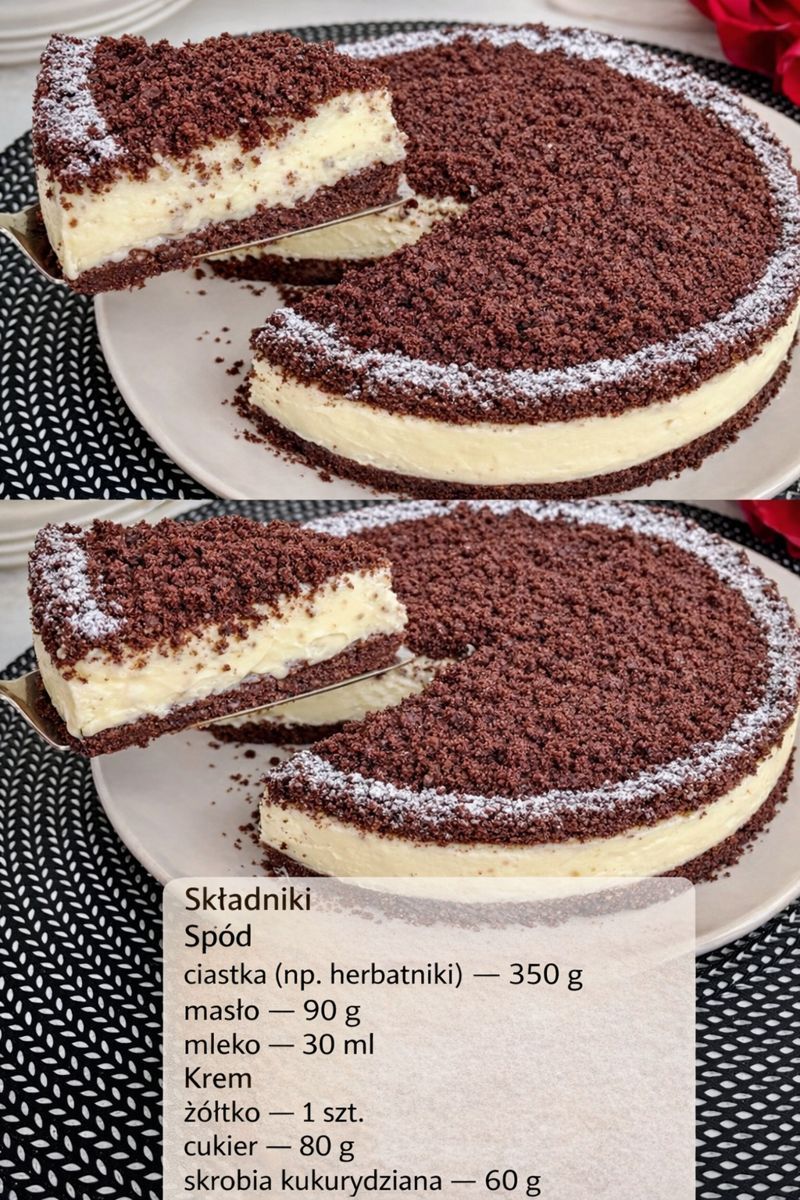 Są takie dni, kiedy nachodzi ochota na coś słodkiego natychmiast, ale bez nagrzewania piekarnika i długiego krzątania się w kuchni. Właśnie wtedy sięgam po ten ekspresowy tort bez pieczenia — na ciasteczkowym spodzie i z grubą, kremową warstwą. Jest prosty w przygotowaniu, naprawdę pyszny i zawsze się udaje. Idealny do kawy, na weekend albo wtedy, gdy niespodziewanie wpadają goście.